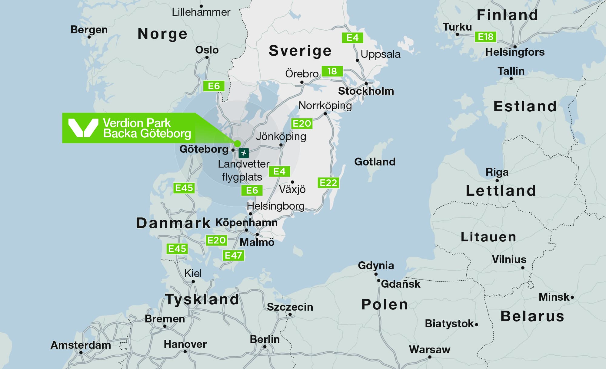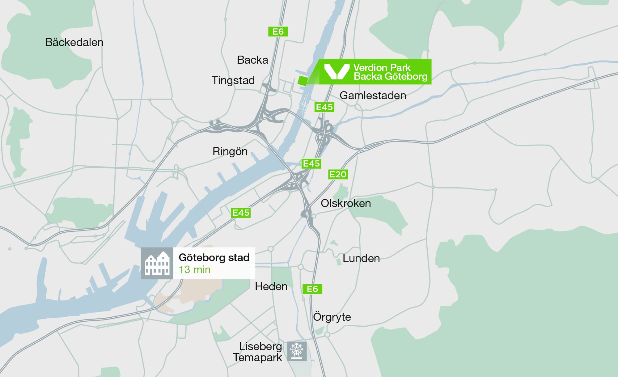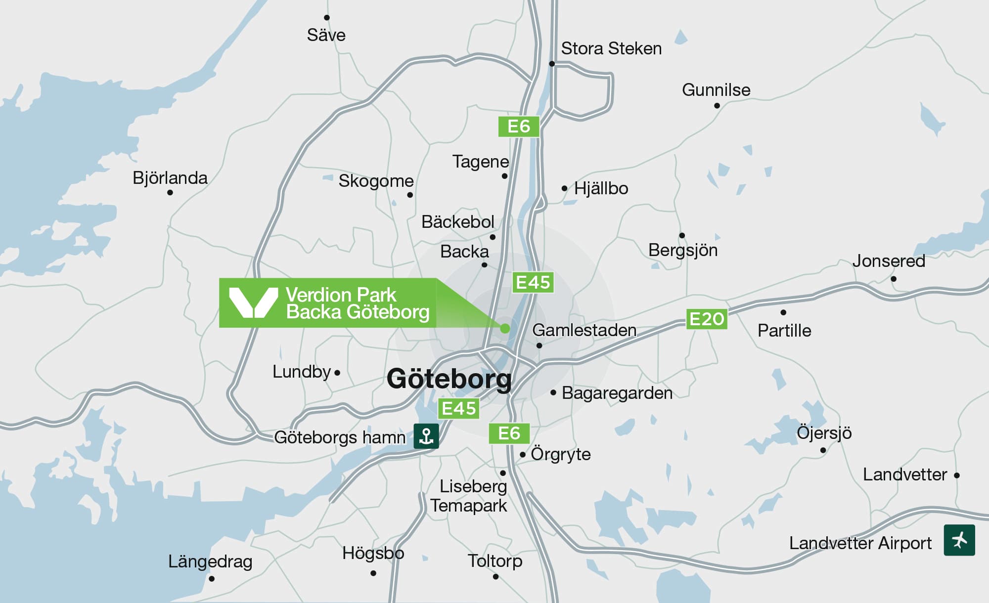 Verdion Park Backa Göteborg drar nytta av enastående väg-, järnvägs- och flygförbindelser för inkommande gods samt har ett lokalt upptagningsområde med cirka 700 000 människor som bor inom 30 minuters bilresa.